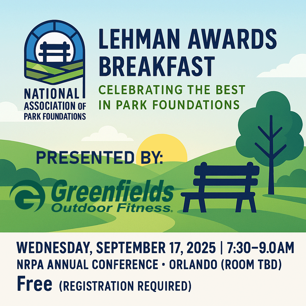 The National Association of Park Foundations (NAPF) is proud to once again celebrate the creativity, leadership, and impact of park foundations nationwide through the Lehman Awards, presented by Greenfields Outdoor Fitness and sponsored by the Charleston County Parks Foundation and Friends of Belfast Parks & Recreation. These annual awards recognize the very best in park philanthropy, fundraising, and community engagement.